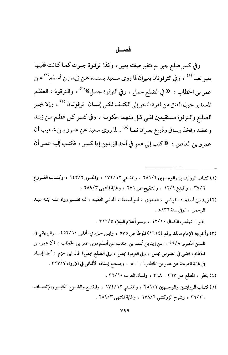 (¬3) وأخرجه الإمام مالك برقم (1614) الموطأ ص 575، وابن حزم في المحلى 10/ 452، والبيهقي في السنن الكبرى 8/ 99، عن زيد بن أسلم بن جندب عن أسلم مولى عمر بن الخطاب: (أن عمر بن الخطاب قضى في الضرس بجمل، وفي الترقوة بجمل، وفي الضلع بجمل) قال ابن حزم: "هذا إسناد في غاية الصحة عن عمر بن الخطاب". ا. هـ، وصحح إسناده الألباني في الإرواء 7/ 337.