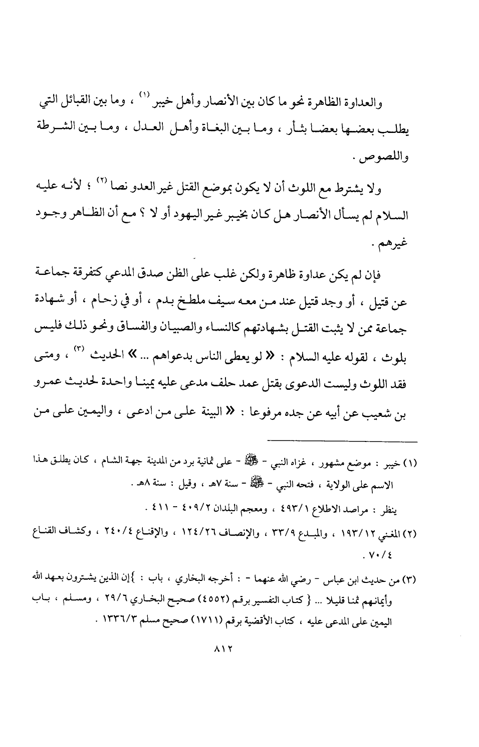 ولا يشترط مع اللوث أن لا يكون بموضع القتل غير العدو نصا (¬2)؛ لأنه عليه السلام لم يسأل الأنصار هل كان بخيبر غير اليهود أو لا؟ مع أن الظاهر وجود غيرهم.