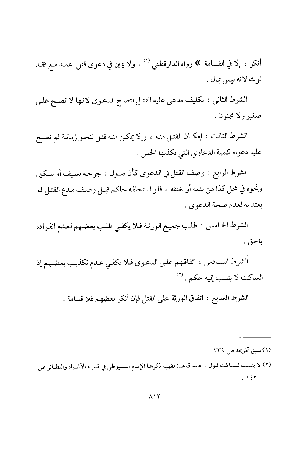 الشرط السادس: اتفاقهم على الدعوى فلا يكفي عدم تكذيب بعضهم إذ الساكت لا ينسب إليه حكم. (¬2)