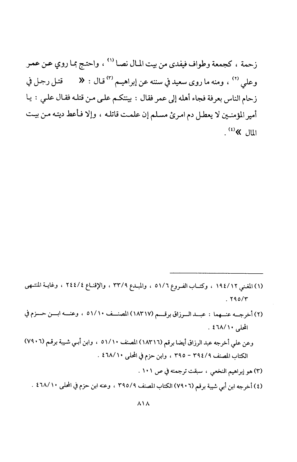 (¬4) أخرجه ابن أبي شيبة برقم (7906) الكتاب المصنف 9/ 395، وعنه ابن حزم في المحلى 10/ 468.