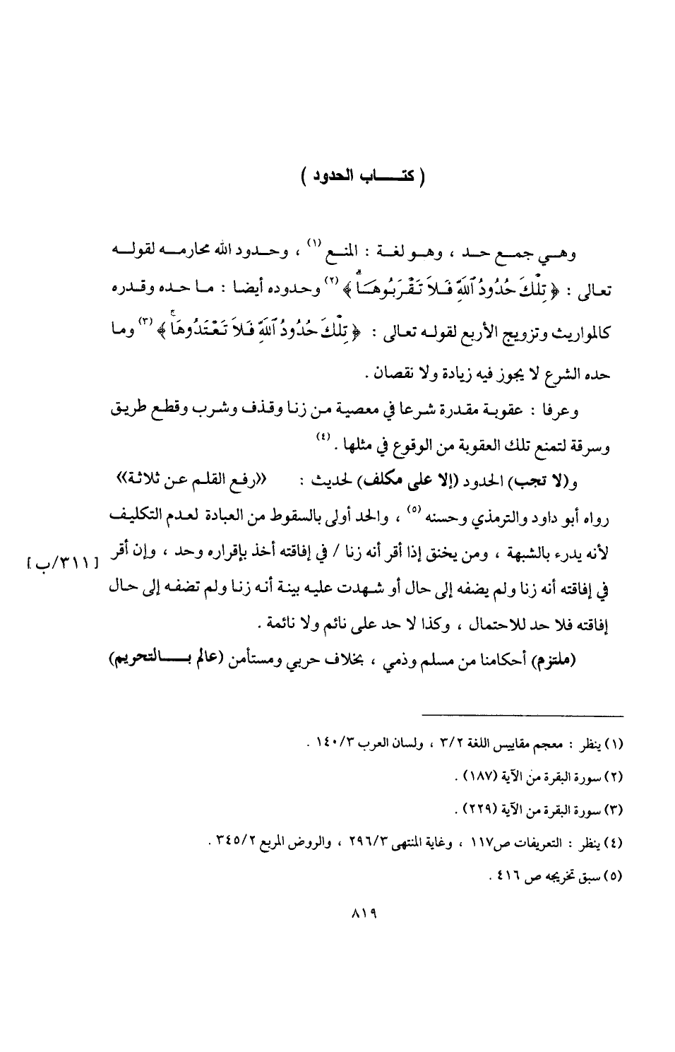 (¬4) ينظر: التعريفات ص 117، وغاية المنتهى 3/ 296، والروض المربع 2/ 345.