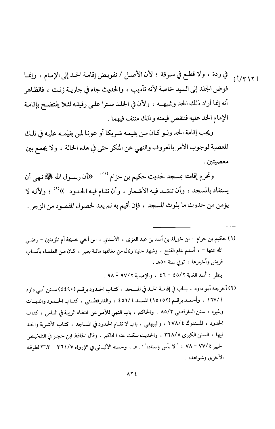 (¬2) أخرجه أبو داود، باب في إقامة الحد في المسجد، كتاب الحدود برقم (4490) سنن أبي داود 4/ 167، وأحمد برقم (15152) المسند 4/ 456، والدارقطني، كتاب الحدود والديات وغيره، سنن الدارقطني 3/ 85، والحاكم. باب النهي للأمير عن ابتغاء الريبة في الناس، كتاب الحدود، المستدرك 4/ 378، والبيهقي، باب لا تقام الحدود في المساجد، كتاب الأشربة والحد فيها، السنن الكبرى 8/ 328، والحديث سكت عنه الحاكم، وقال الحافظ ابن حجر في التلخيص الحبير 4/ 77 - 78: "لا بأس بإسناده" ا. هـ، وحسنه الألباني في الإرواء 7/ 361 - 363 لطرقه الأخرى وشواهده.