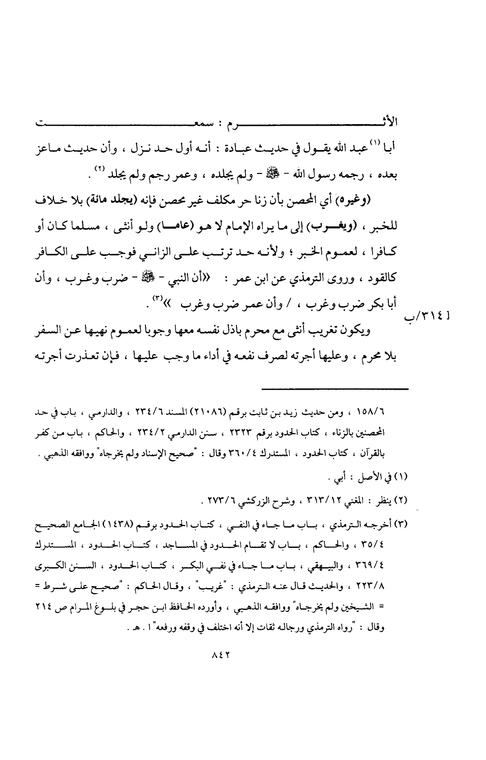= 6/ 158، ومن حديث زيد بن ثابت برقم (21086) المسند 6/ 234، والدارمي، باب في حد المحصنين بالزناء، كتاب الحدود برقم 2323، سنن الدارمي 2/ 234، والحاكم، باب من كفر بالقرآن، كتاب الحدود، المستدرك 4/ 360 وقال: "صحيح الإسناد ولم يخرجاه" ووافقه الذهبي.