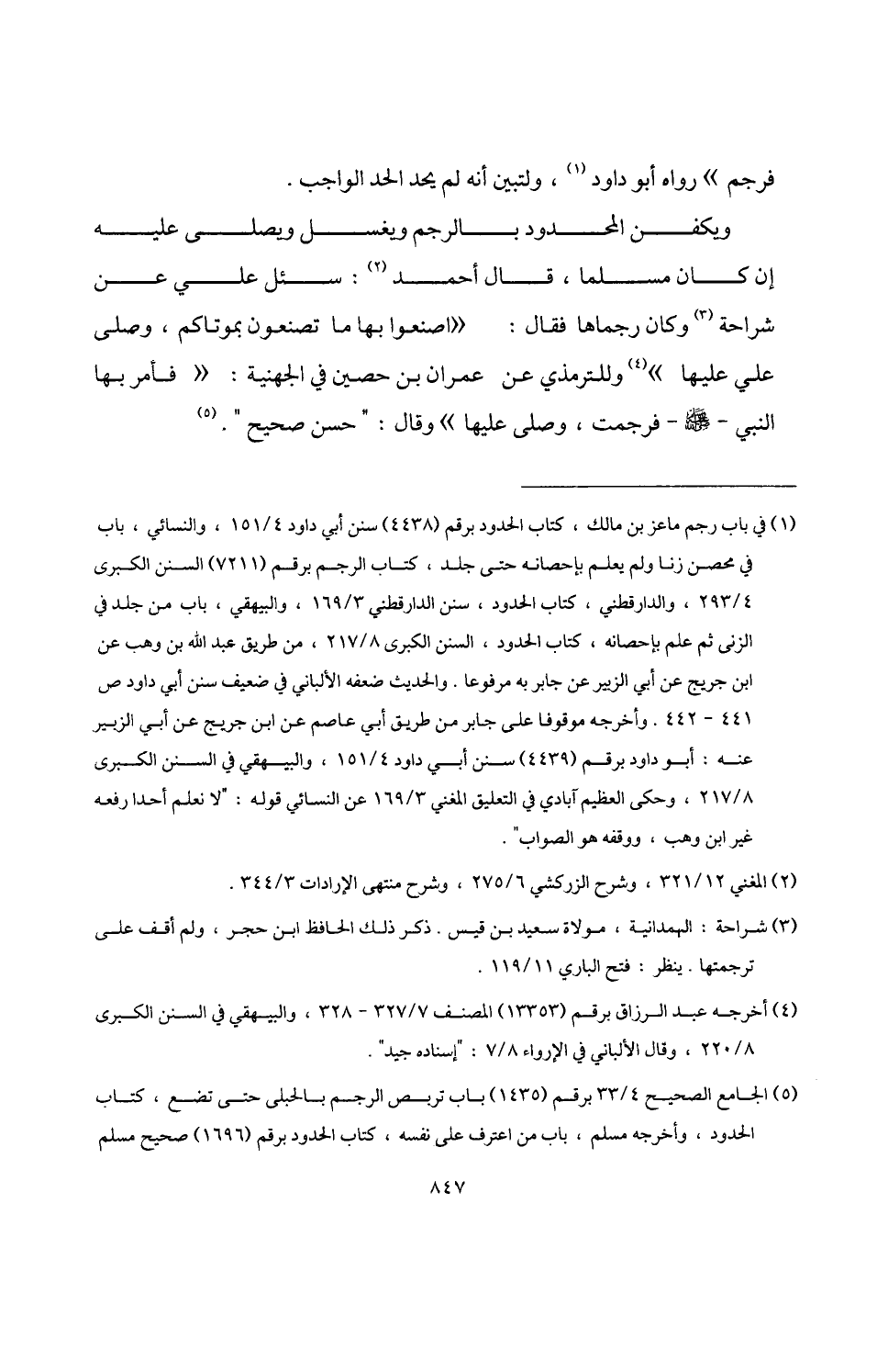(¬5) الجامع الصحيح 4/ 33 برقم (1435) باب تربص الرجم بالحبلى حتى تضع، كتاب الحدود، وأخرجه مسلم، باب من اعترف على نفسه، كتاب الحدود برقم (1696) صحيح مسلم =