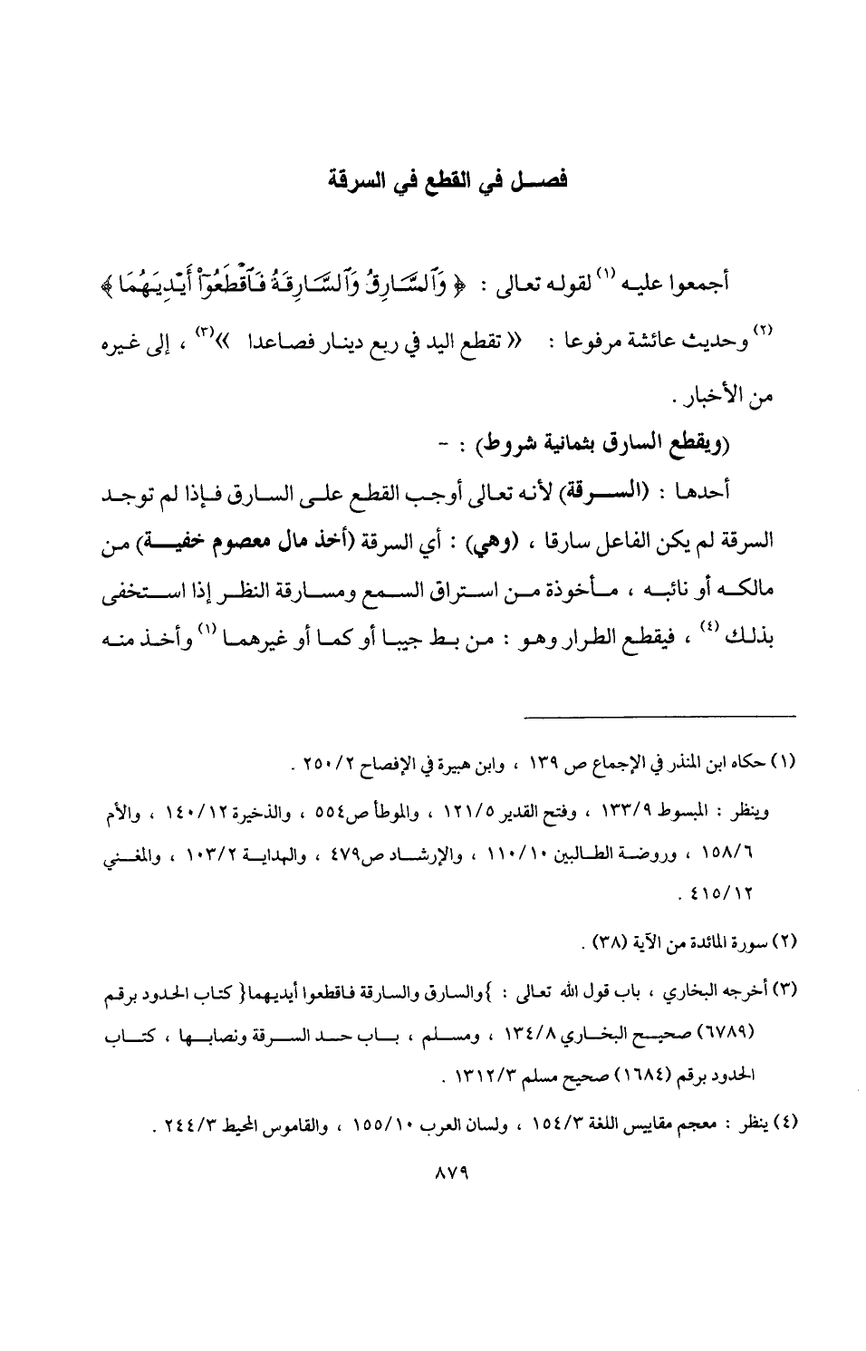 أجمعوا عليه (¬1) لقوله تعالى: {وَالسَّارِقُ وَالسَّارِقَةُ فَاقْطَعُوا أَيْدِيَهُمَا} (¬2) وحديث عائشة مرفوعا: "تقطع اليد في ربع دينار فصاعدا" (¬3)، إلى غيره من الأخبار.