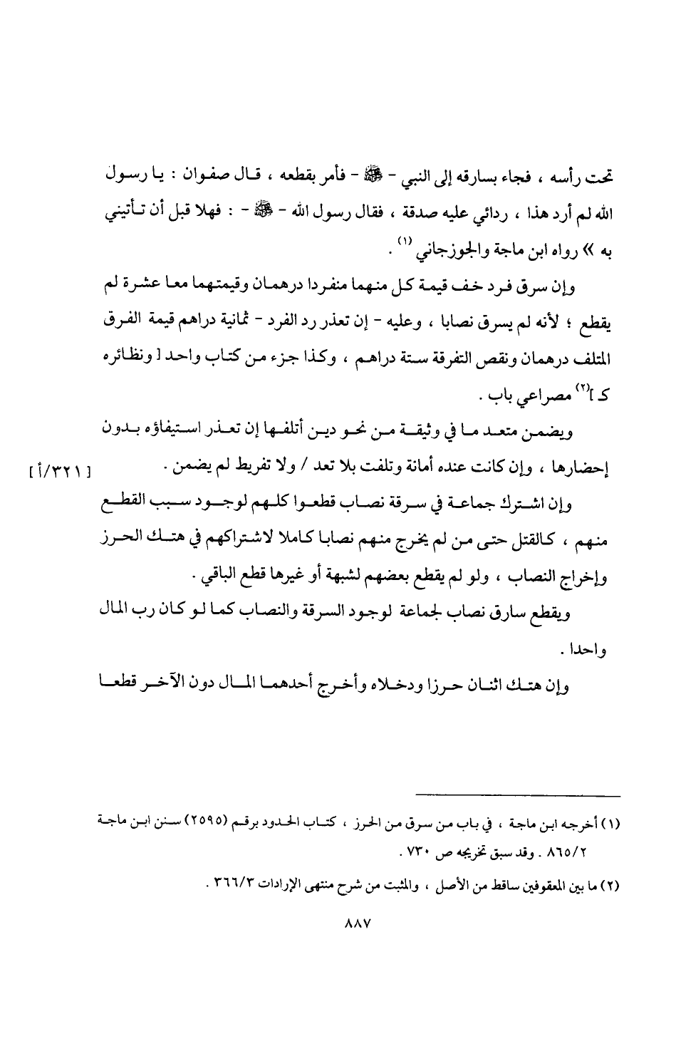 (¬1) أخرجه ابن ماجه، في باب من سرق من الحرز، كتاب الحدود برقم (2595) سنن ابن ماجه 2/ 865. وقد سبق تخريجه ص 730.