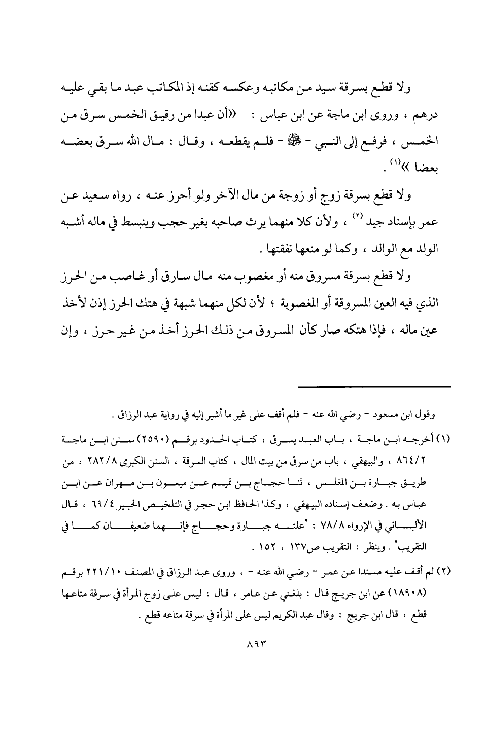 (¬1) أخرجه ابن ماجه، باب العبد يسرق، كتاب الحدود برقم (2590) سنن ابن ماجه 2/ 864، والبيهقي، باب من سرق من بيت المال، كتاب السرقة، السنن الكبرى 8/ 282، من طريق جبارة بن المغلس، ثنا حجاج بن تميم عن ميمون بن مهران عن ابن عباس به. وضعف إسناده البيهقي، وكذا الحافظ ابن حجر في التلخيص الحبير 4/ 69، قال الألباني في الإرواء 8/ 78: "علته جبارة وحجاج فإنهما ضعيفان كما في التقريب". وينظر: التقريب ص 137، 152.