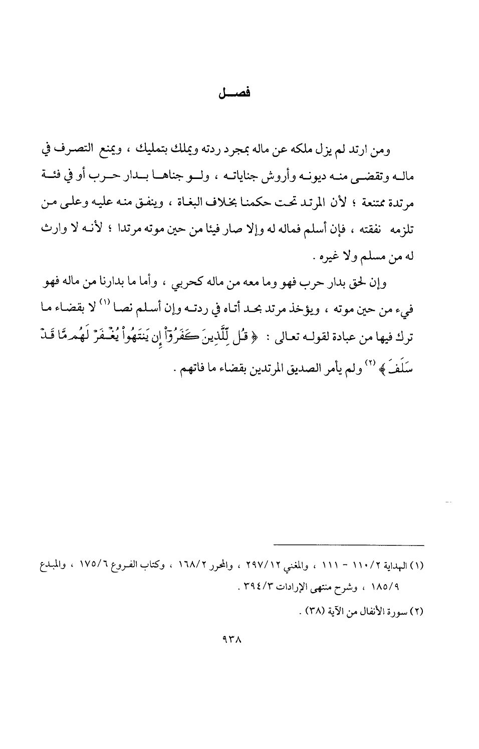 (¬1) الهداية 2/ 110 - 111، والمغني 12/ 297، والمحرر 2/ 168، وكتاب الفروع 6/ 175، والمبدع 9/ 185، وشرح منتهى الإرادات 3/ 394.