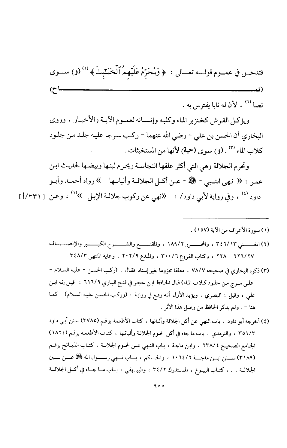 (¬4) أخرجه أبو داود، باب النهي عن أكل الجلالة وألبانها، كتاب الأطعمة برقم (3785) سنن أبي داود 3/ 351، والترمذي، باب ما جاء في أكل لحوم الجلالة وألبانها، كتاب الأطعمة برقم (1824) الجامع الصحيح 4/ 238، وابن ماجة، باب النهي عن لحوم الجلالة، كتات الذبائح برقم (3189) سنن ابن ماجة 2/ 1064، والحاكم، باب نهي رسول اللَّه -صلى اللَّه عليه وسلم- عن لبن الجلالة. .، كتاب البيوع، المستدرك 2/ 34، والبيهقي، باب ما جاء في أكل الجلالة =