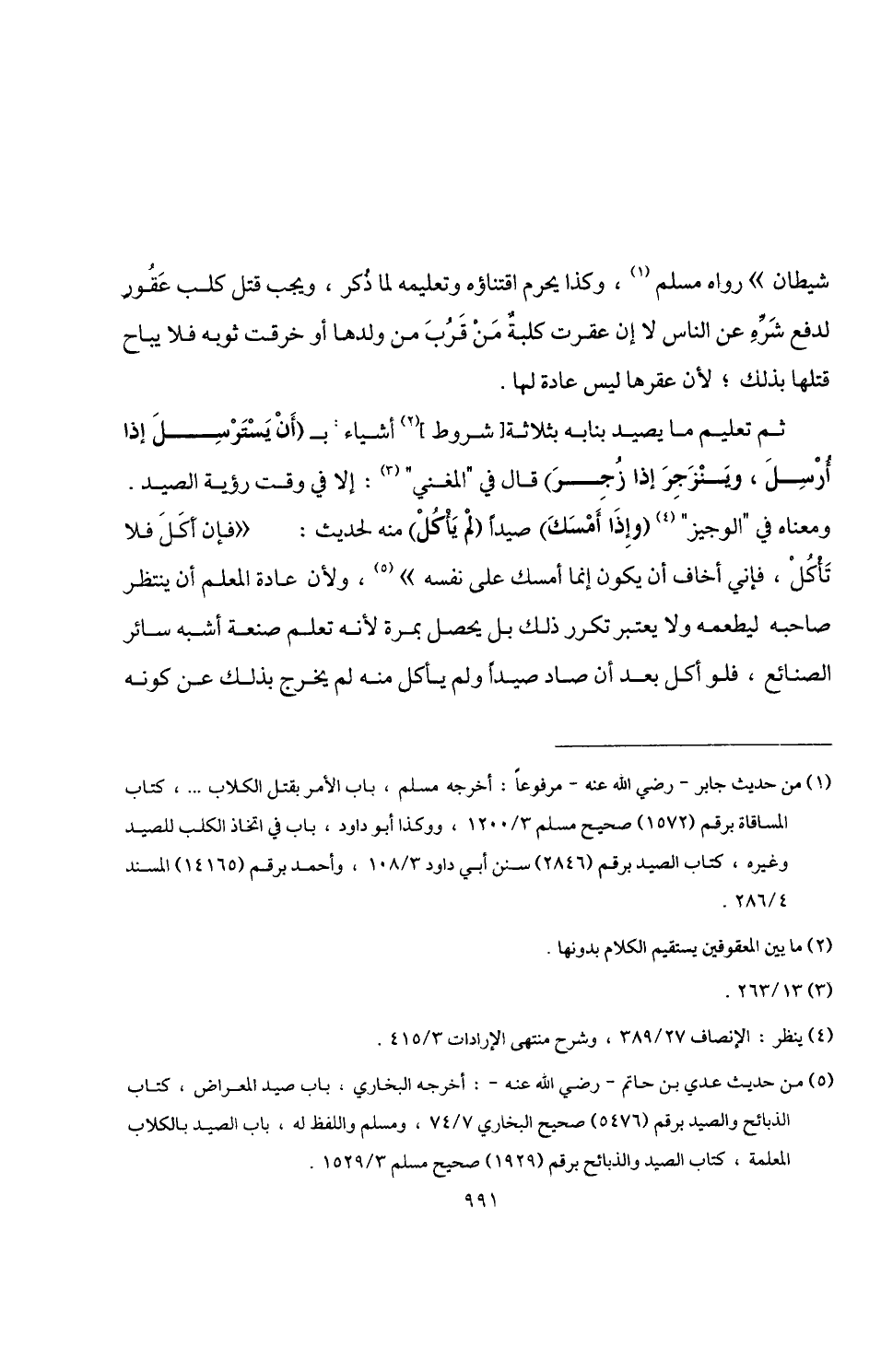 (¬5) من حديث عدي بن حاتم -رضي اللَّه عنه-: أخرجه البخاري: باب صيد المعراض، كتاب الذبائح والصيد برقم (5476) صحيح البخاري 7/ 74، ومسلم واللفظ له، باب الصيد بالكلاب المعلمة، كتاب الصيد والذبائح برقم (1929) صحيح مسلم 3/ 1529.