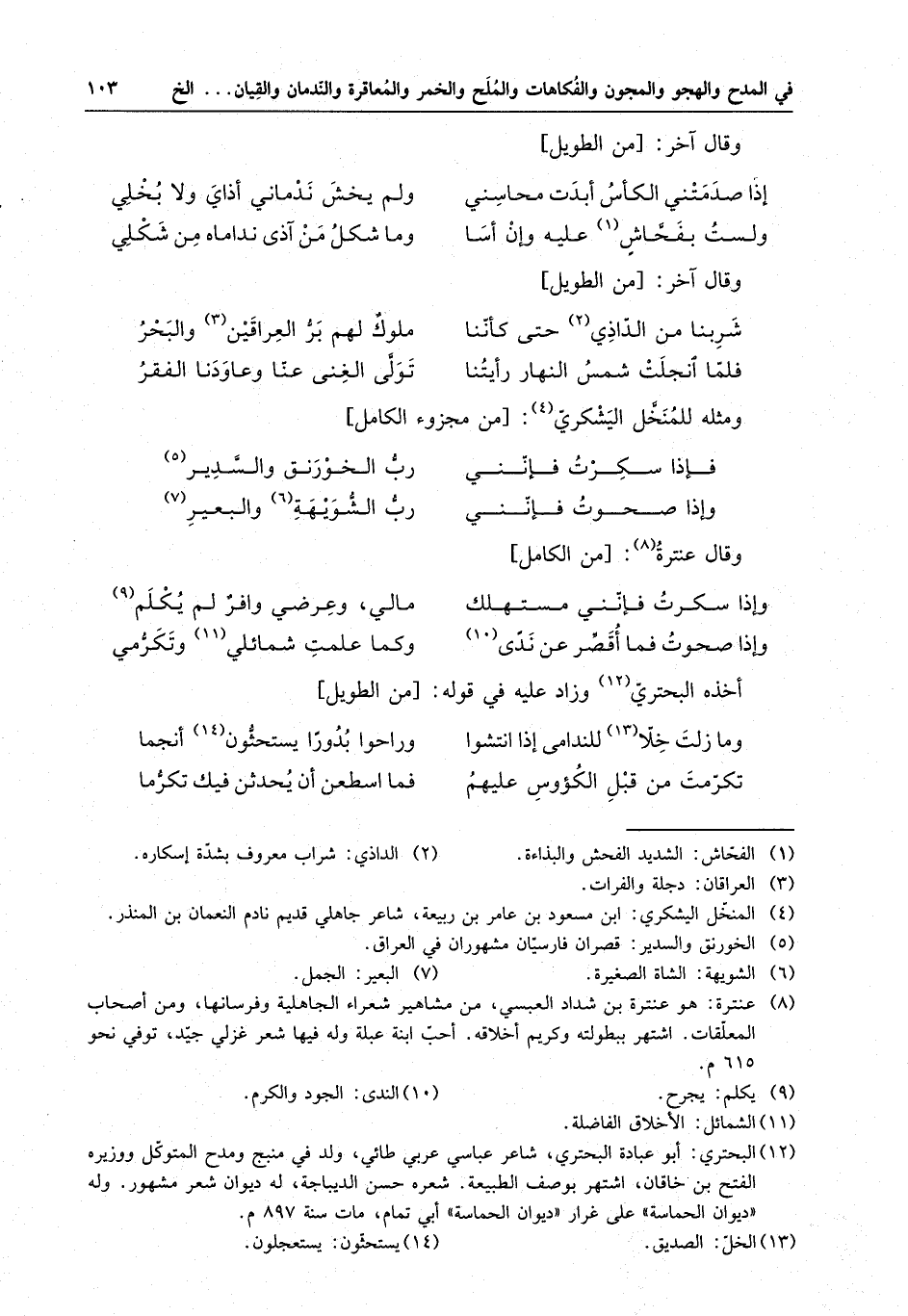 وإذا سكرت فإنني مستهلك . . . مالي ، وعرضي وافر لم يكلم