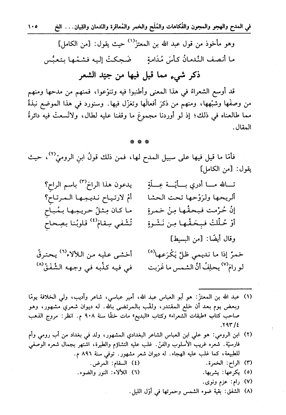 وهو مأخوذ من قول عبد الله بن المعتز حيث يقول :