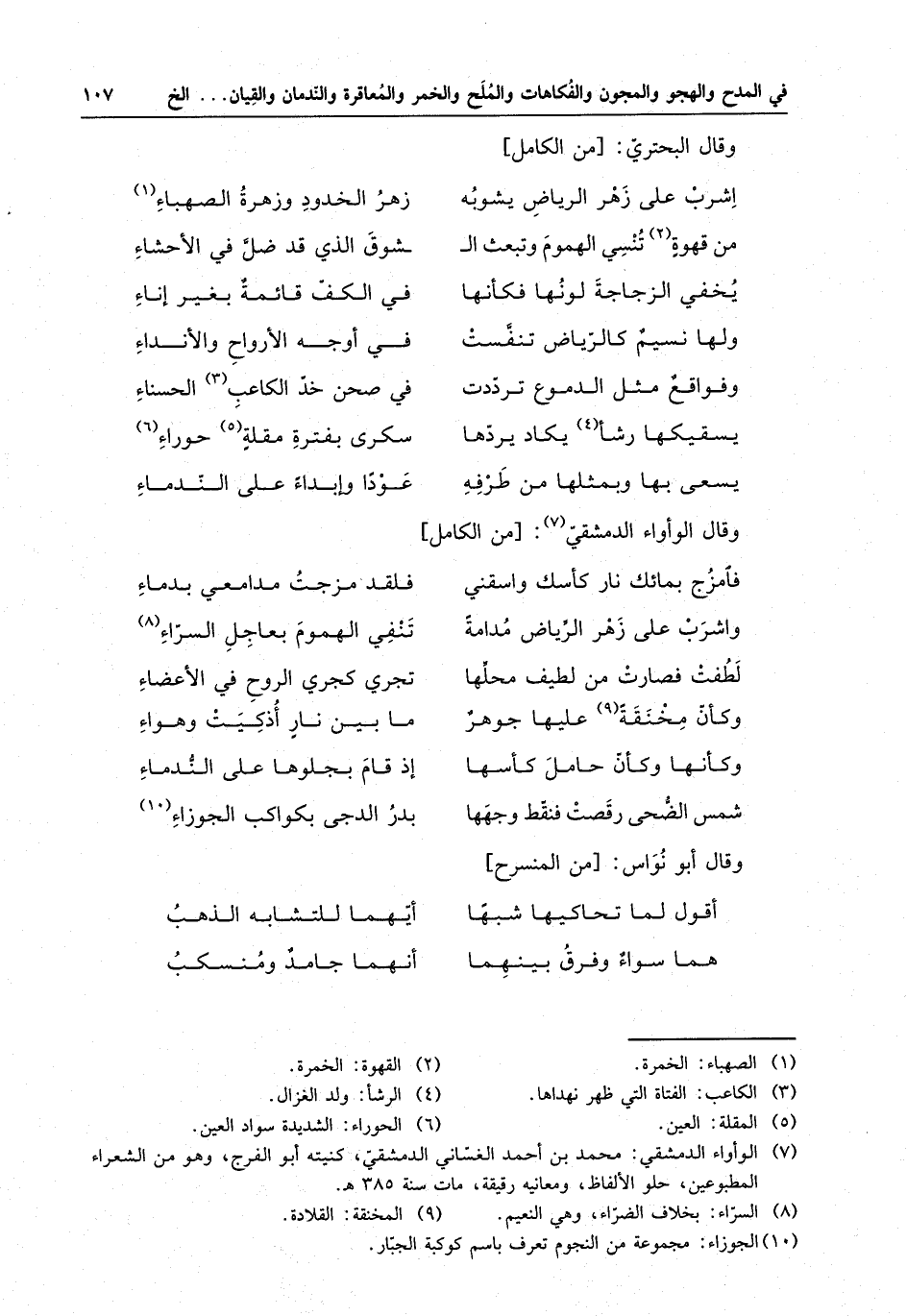 اشرب على زهر الرياض يشوبه . . . زهر الخدود وزهرة الصهباء