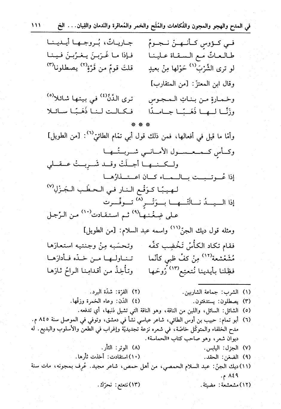 في كئوس كأنهن نجوم . . . جاريات ، بروجها أيدينا