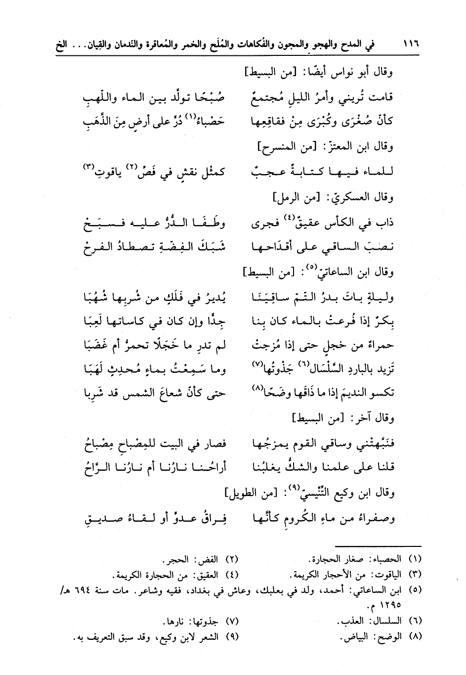 تكسو النديم إذا ما ذاقها وضحاً . . . حتى كأن شعاع الشمس قد شربا وقال آخر :