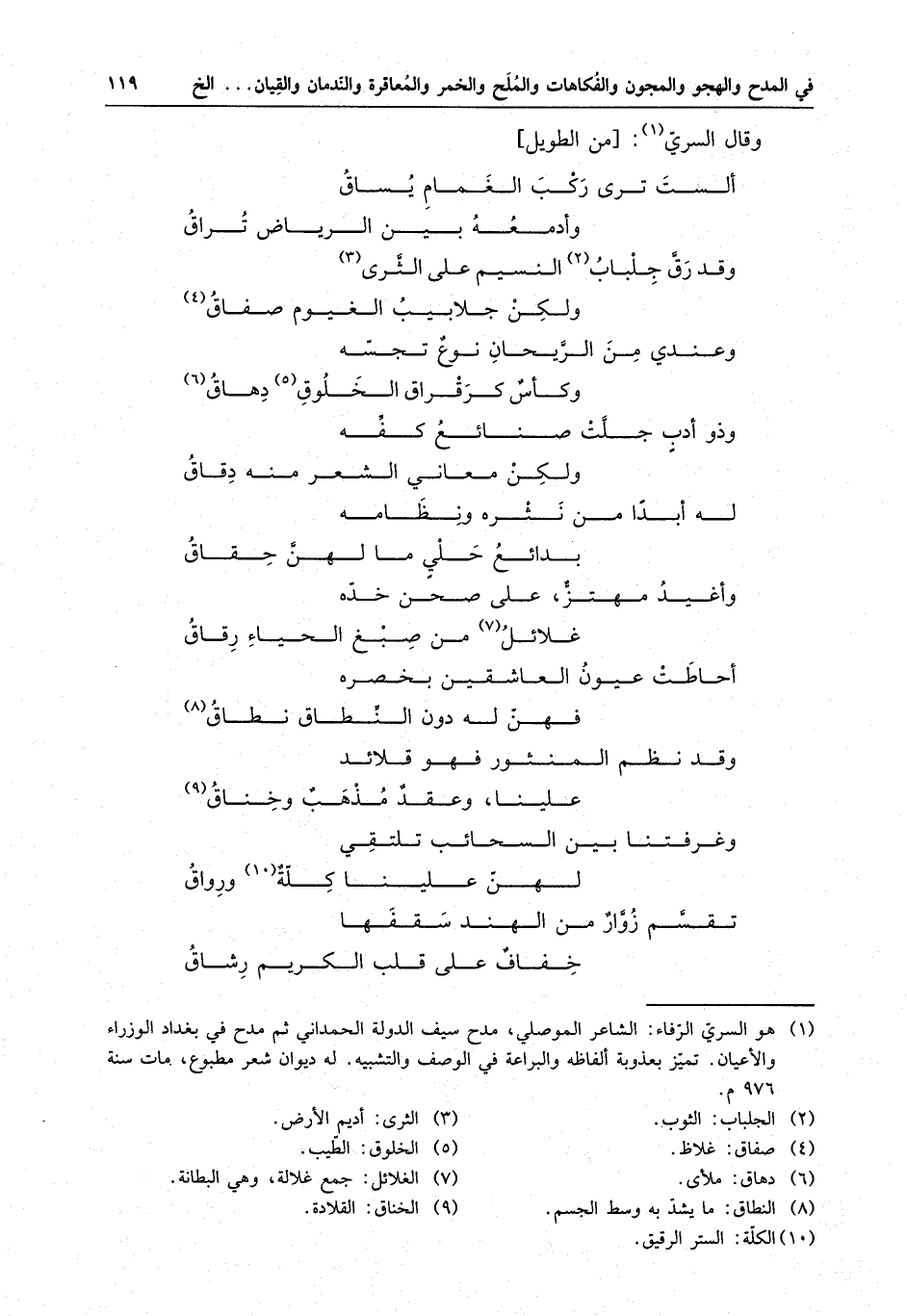 وعندي من الريحان نوع تجسه . . . وكأس كرقراق الخلوق دهاق