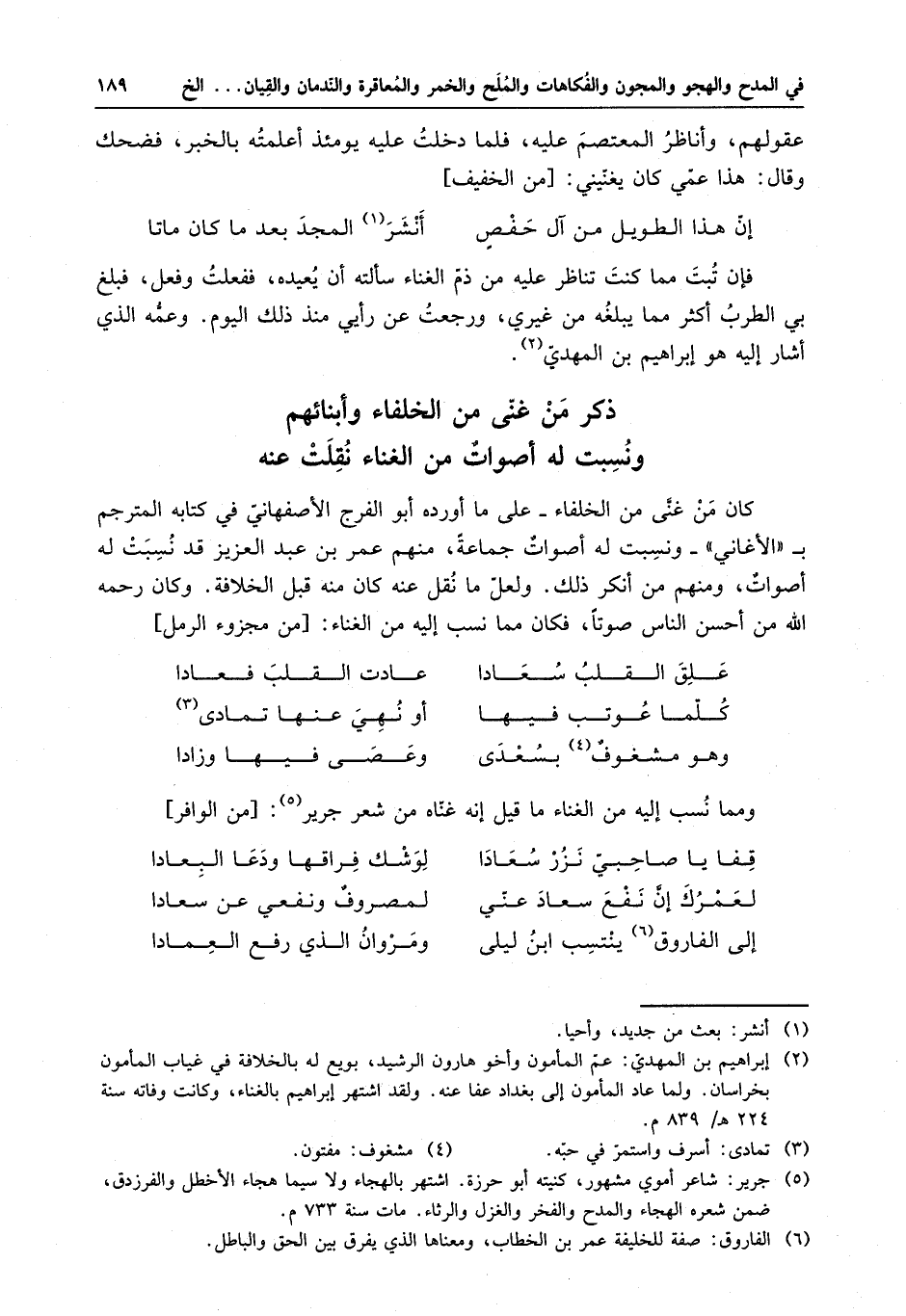 فإن تبت مما كنت تناظر عليه من ذم الغناء سألته أن يعيده ، ففعلت وفعل ، فبلغ بي الطرب أكثر مما يبلغه من غيري ، ورجعت عن رأي منذ ذلك اليوم . وعمه الذي أشار إليه هو إبراهيم بن المهدي .