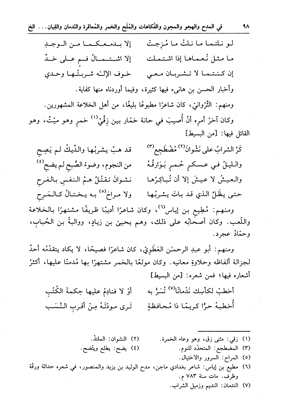 ومنهم : مطيع بن إياس . وكان شاعراً أديباً ظريفاً مشتهراً بالخلاعة واللعب . وكان أصحابه على ذلك ، وهم يحيى بن زياد ، ووالبة بن الحباب ، وحماد عجرد .