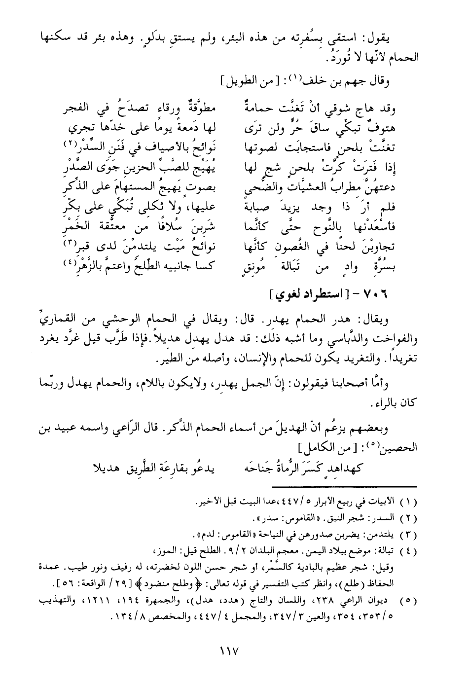 [5] ديوان الراعي 238، واللسان والتاج (هدد، هدل) ، والجمهرة 194، 1211، والتهذيب 5/353، 354، والعين 3/347، والمجمل 4/447، والمخصص 8/134.