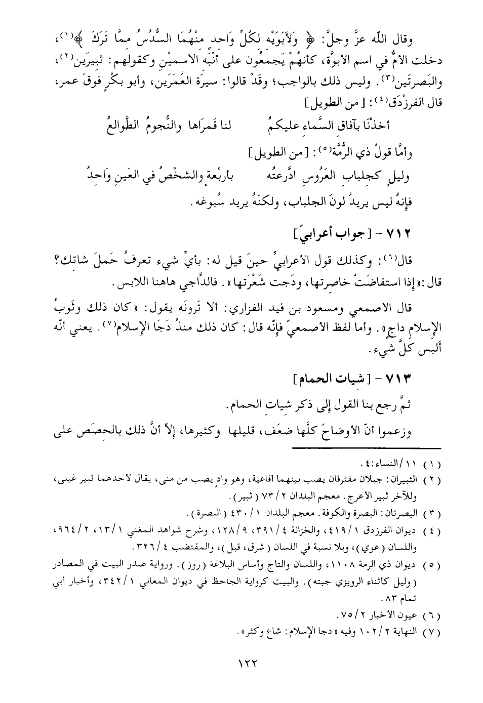 قال [6] : وكذلك قول الأعرابيّ حين قيل له: بأيّ شيء تعرف حمل شاتك؟