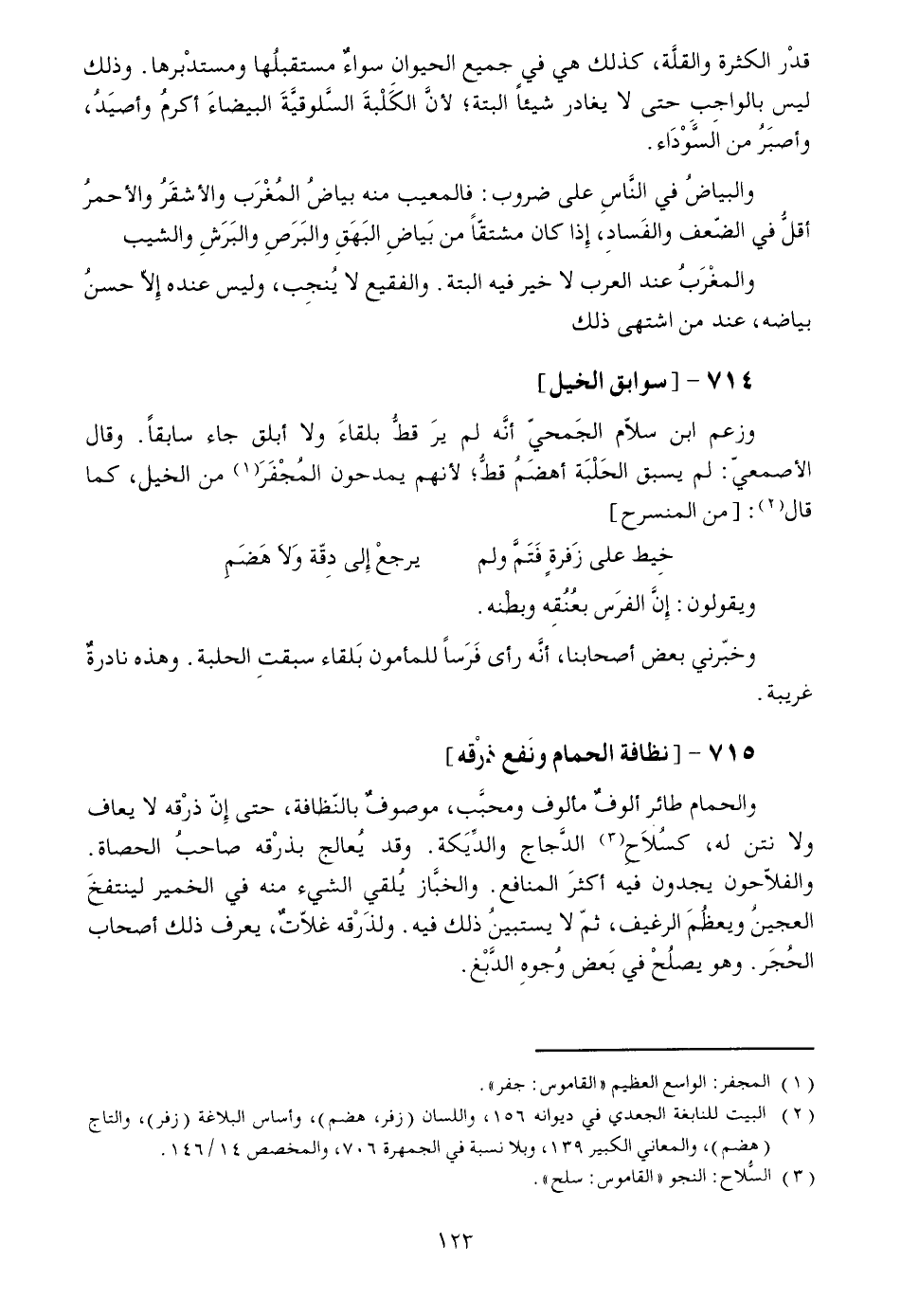 وزعم ابن سلّام الجمحيّ أنّه لم يرقطّ بلقاء ولا أبلق جاء سابقا. وقال الأصمعيّ: لم يسبق الحلبة أهضم قطّ؛ لأنهم يمدحون المجفر [1] من الخيل، كما قال [2] : [من المنسرح]