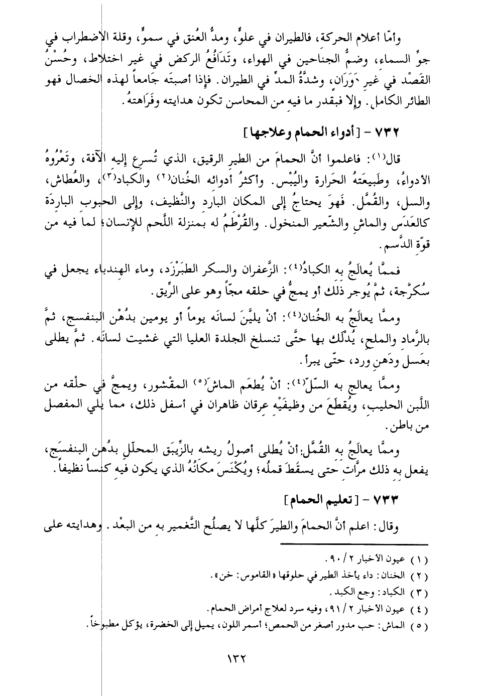 [4] عيون الأخبار 2/91، وفيه سرد لعلاج أمراض الحمام.