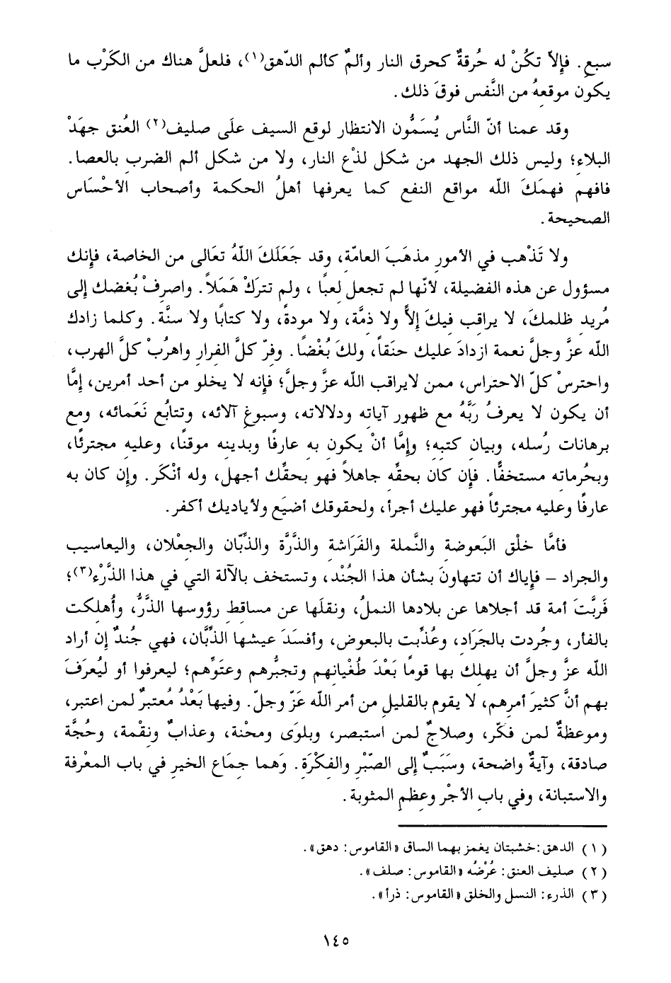 فافهم فهمك الله مواقع النفع كما يعرفها أهل الحكمة وأصحاب الأحساس الصحيحة.