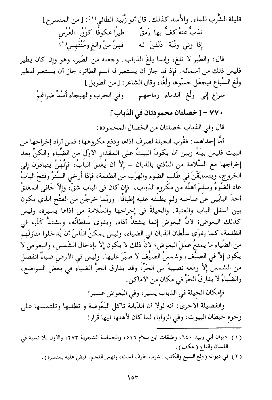 قال وفي الذباب خصلتان من الخصال المحمودة: