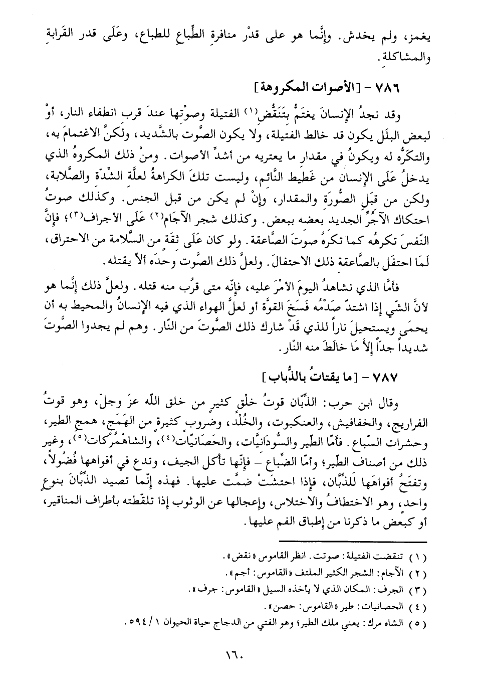 وقال ابن حرب: الذّبّان قوت خلق كثير من خلق الله عزّ وجلّ، وهو قوت الفراريج، والخفافيش، والعنكبوت، والخلد، وضروب كثيرة من الهمج، همج الطير، وحشرات السّباع. فأمّا الطّير والسّودانيّات، والحصانيّات [4] ، والشاهمركات [5] ، وغير ذلك من أصناف الطّير؛ وأمّا الضّباع- فإنّها تأكل الجيف، وتدع في أفواهها فضولا، وتفتح أفواهها للذّبّان، فإذا احتشت ضمّت عليها. فهذه إنّما تصيد الذّبّان بنوع واحد، وهو الاختطاف والاختلاس، وإعجالها عن الوثوب إذا تلقّطته بأطراف المناقير، أو كبعض ما ذكرنا من إطباق الفم عليها.