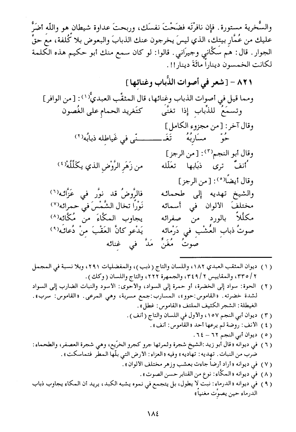 [1] ديوان المثقب العبدي 182، واللسان والتاج (ذبب) ، والمفضليات 291، وبلا نسبة في المجمل 2/335، والمقاييس 2/349، والجمهرة 222، والتاج واللسان (وكك) .