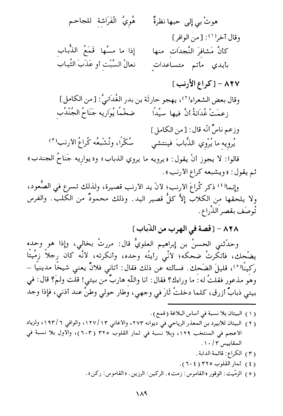 يرويه ما يروي الذّباب فينتشي ... سكرا، وتشبعه كراع الأرنب [3]