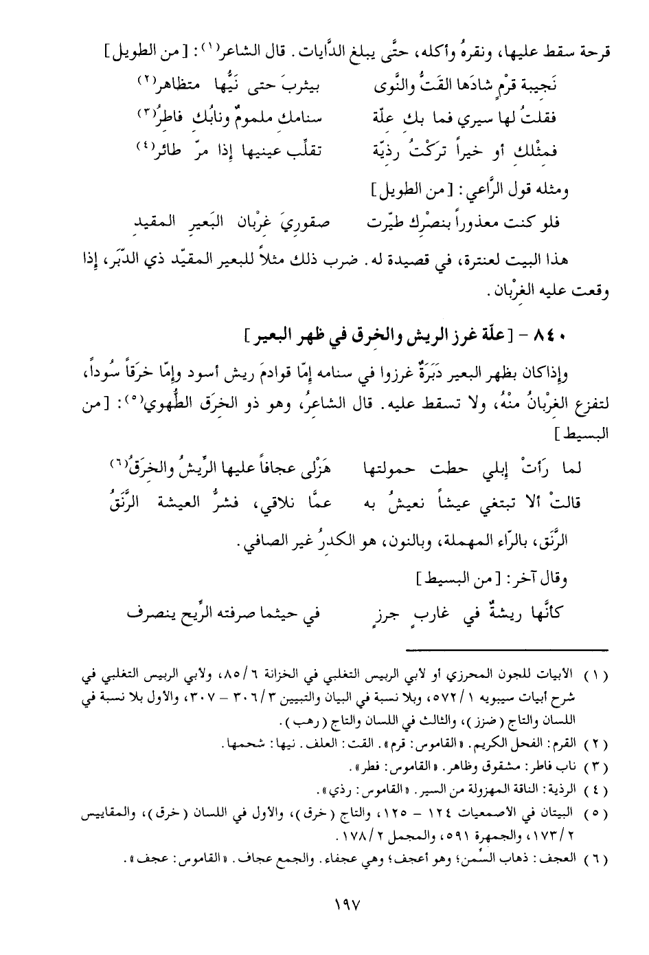 840-[علّة غرز الريش والخرق في ظهر البعير]