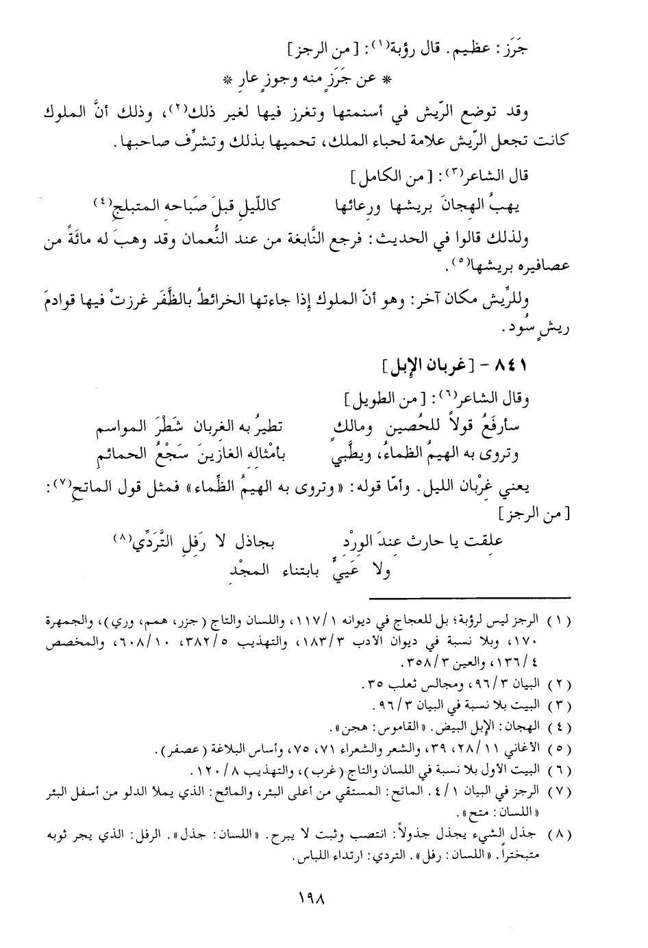 [1] الرجز ليس لرؤبة؛ بل للعجاج في ديوانه 1/117، واللسان والتاج (جزر، همم، وري) ، والجمهرة 170، وبلا نسبة في ديوان الأدب 3/183، والتهذيب 5/382، 10/608، والمخصص 4/136، والعين 3/358.