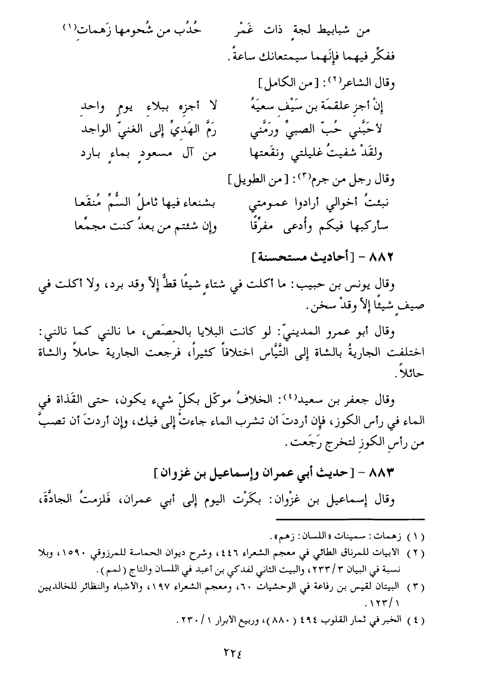 [3] البيتان لقيس بن رفاعة في الوحشيات 60، ومعجم الشعراء 197، والأشباه والنظائر للخالديين 1/123.