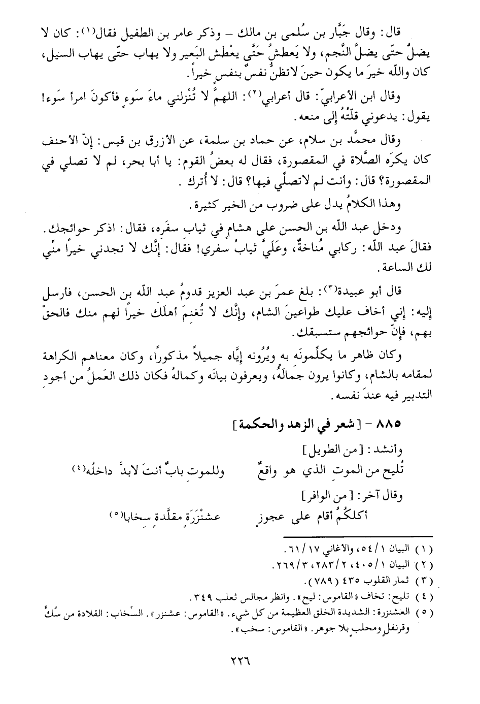 [5] العشنزرة: الشديدة الخلق العظيمة من كل شيء. «القاموس: عشنزر» . السّخاب: القلادة من سكّ وقرنفل ومحلب بلا جوهر. «القاموس: سخب» .