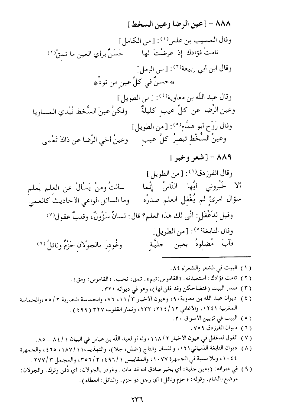 [7] القول لدغفل في عيون الأخبار 2/118، وله أو لعبد الله بن عباس في البيان 1/84- 85.