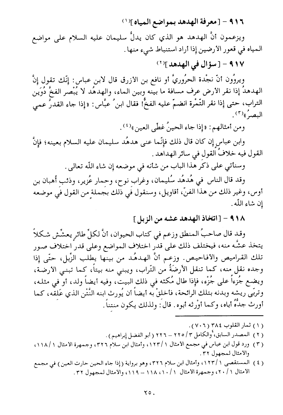[1] ويزعمون أنّ الهدهد هو الذي كان يدلّ سليمان عليه السلام على مواضع المياه في قعور الأرضين إذا أراد استنباط شيء منها.