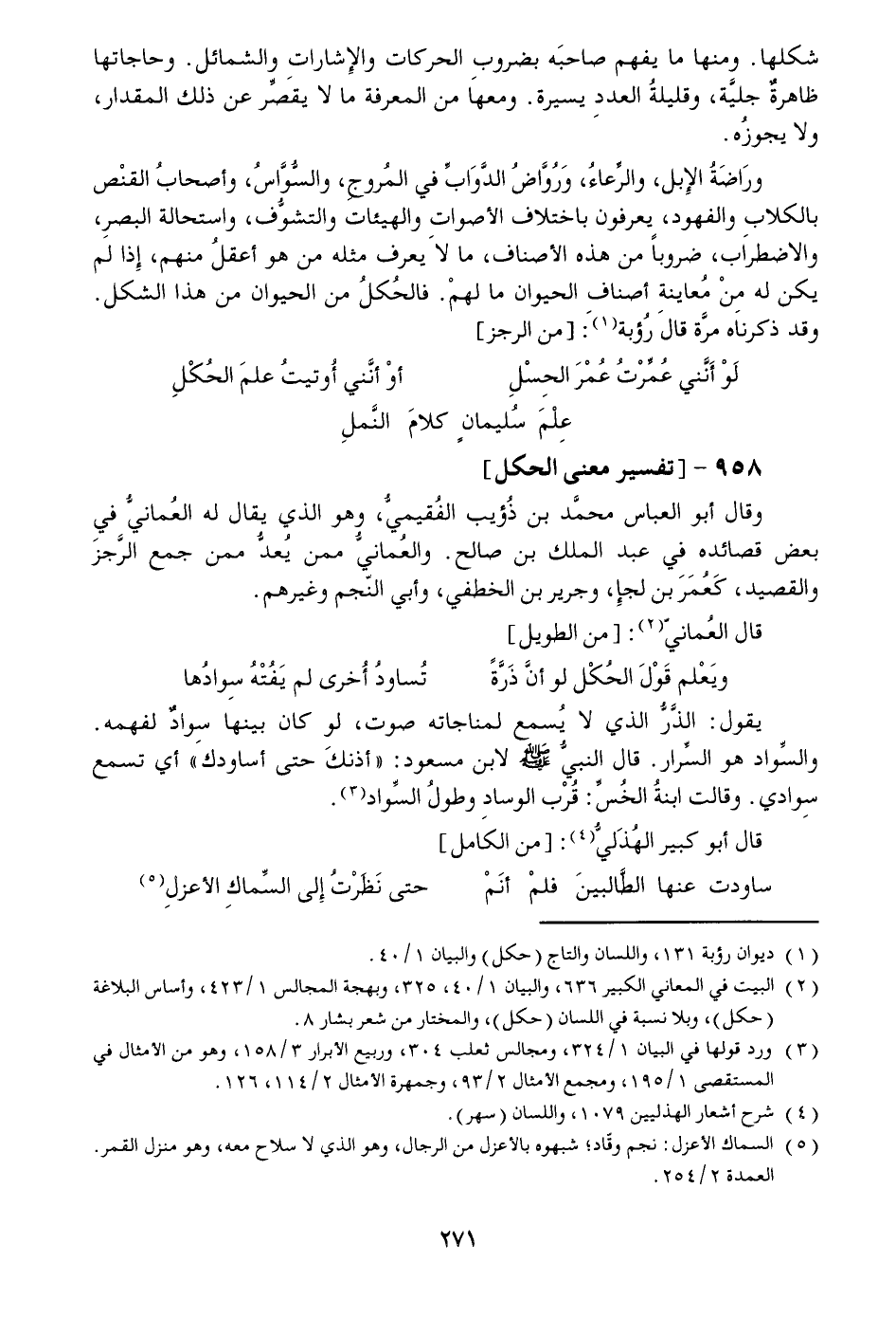 [1] ديوان رؤبة 131، واللسان والتاج (حكل) والبيان 1/40.
