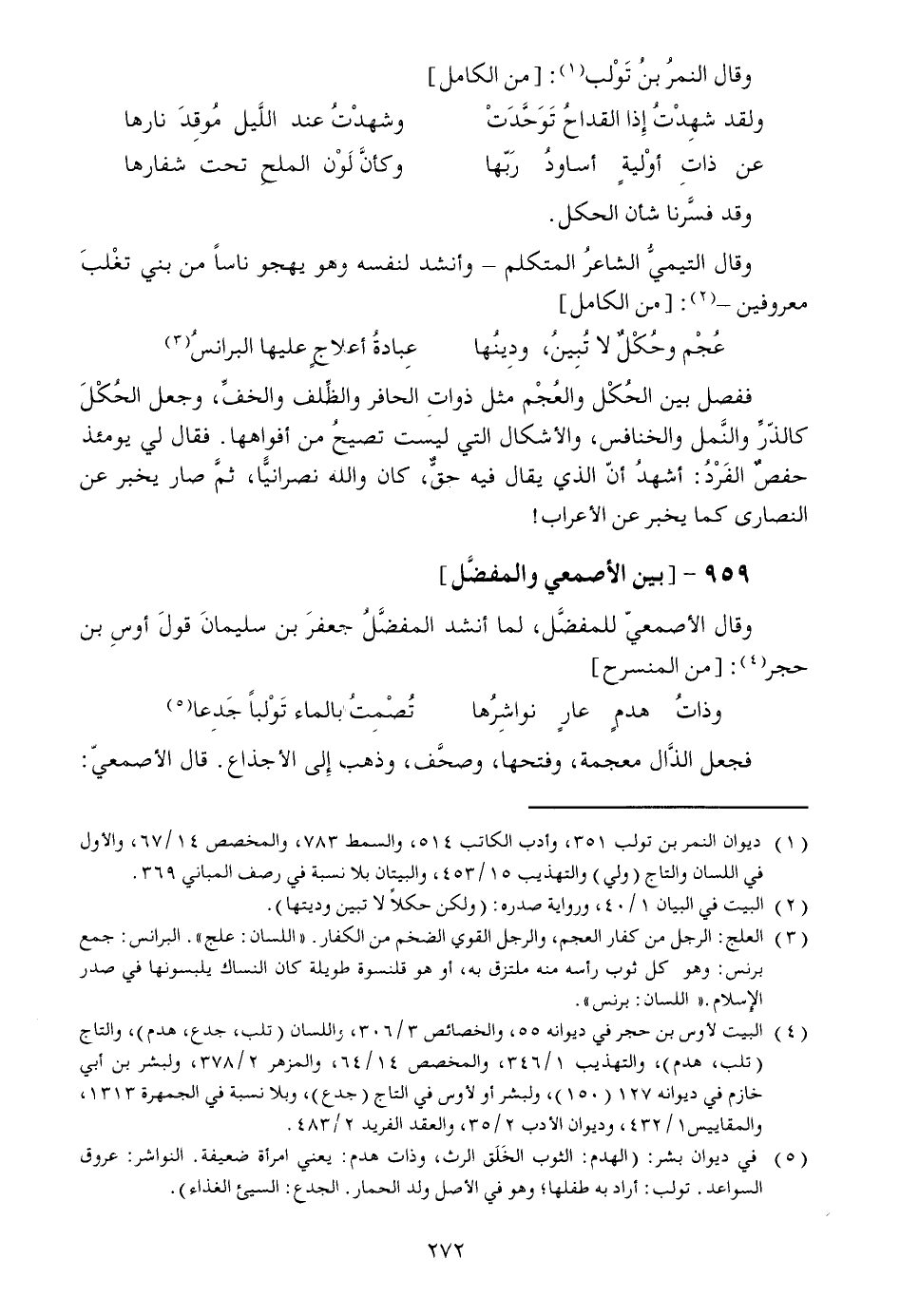 [4] البيت لأوس بن حجر في ديوانه 55، والخصائص 3/306، واللسان (تلب، جدع، هدم) ، والتاج (تلب، هدم) ، والتهذيب 1/346، والمخصص 14/64، والمزهر 2/378، ولبشر بن أبي خازم في ديوانه 127 (150) ، ولبشر أو لأوس في التاج (جدع) ، وبلا نسبة في الجمهرة 1313، والمقاييس 1/432، وديوان الأدب 2/35، والعقد الفريد 2/483.