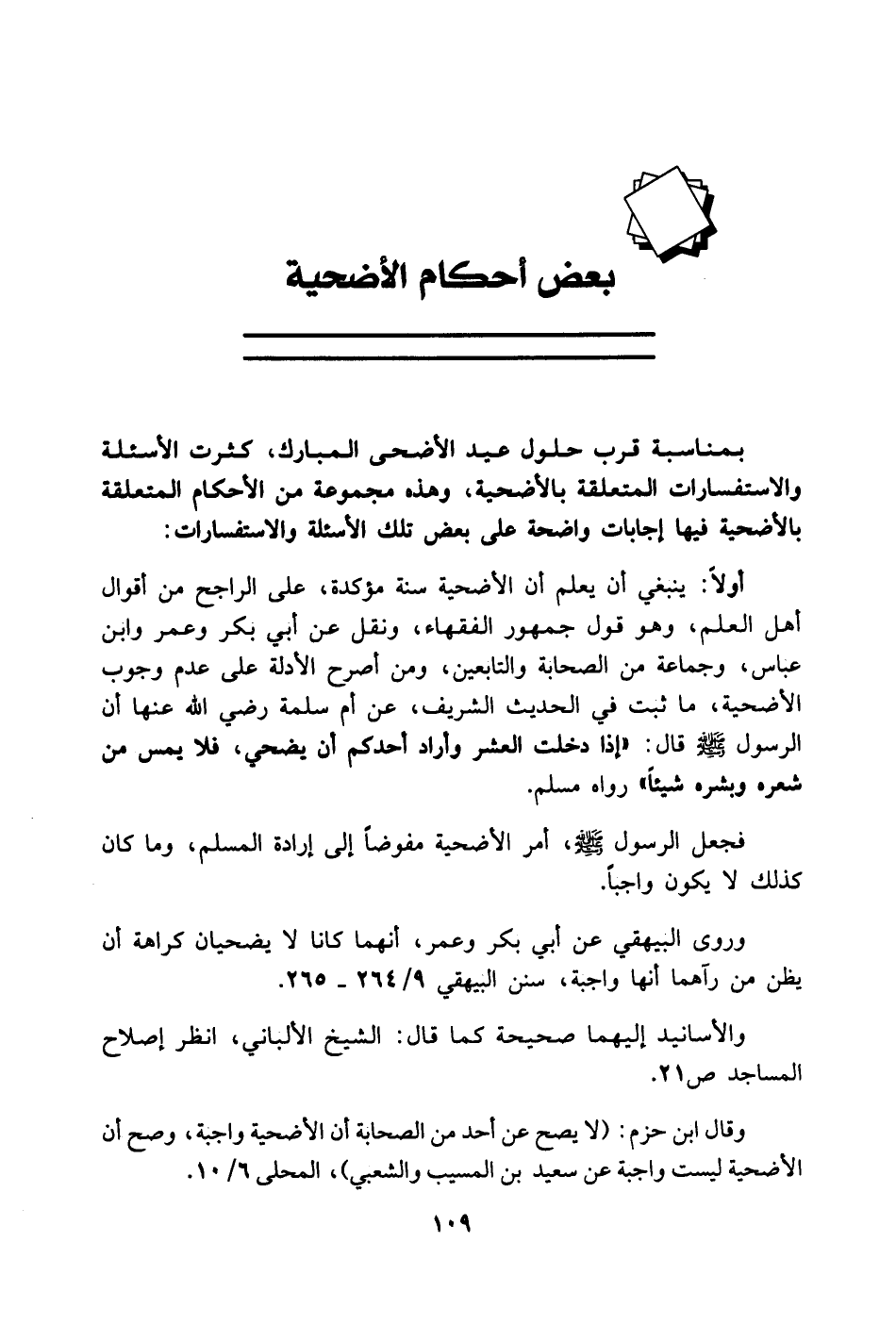 بعض أحكام الأضحية