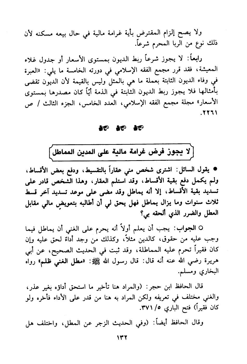 لا يجوز فرض غرامة مالية على المدين المماطل