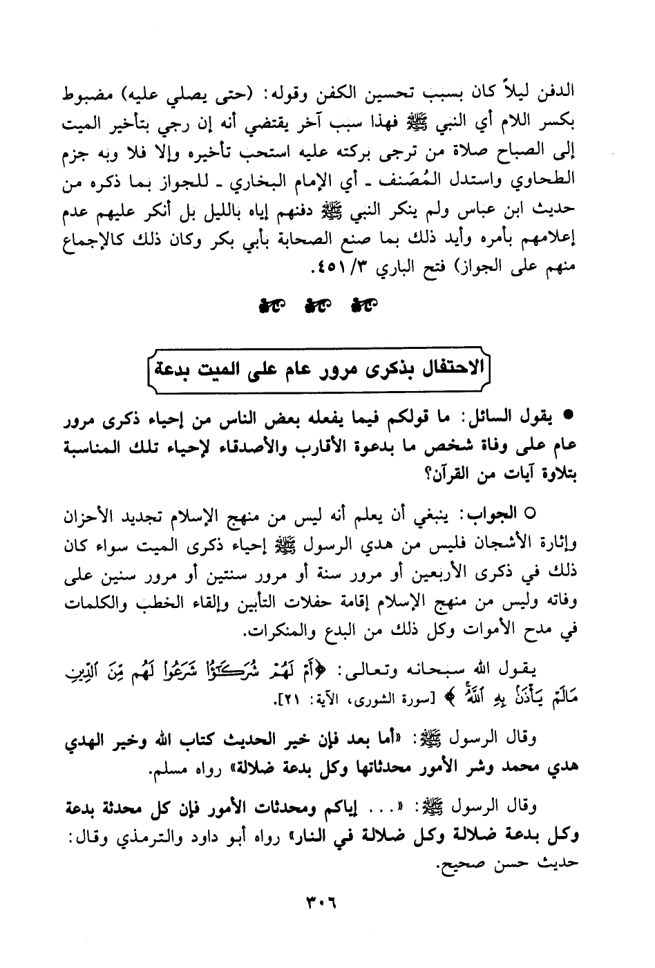 الاحتفال بذكرى مرور عام على الميت بدعة
