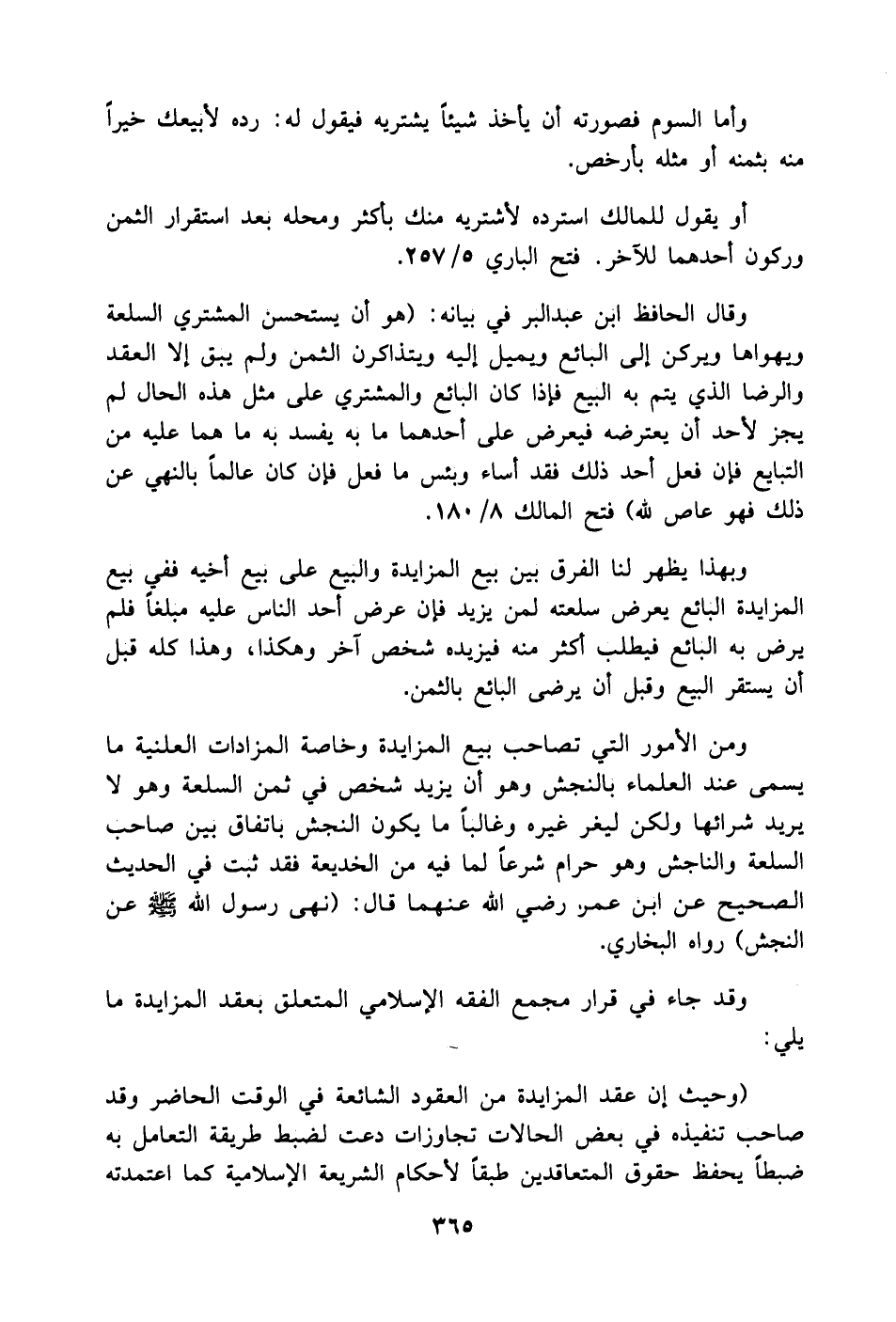 وقد جاء في قرار مجمع الفقه الإسلامي المتعلق بعقد المزايدة ما يلي: