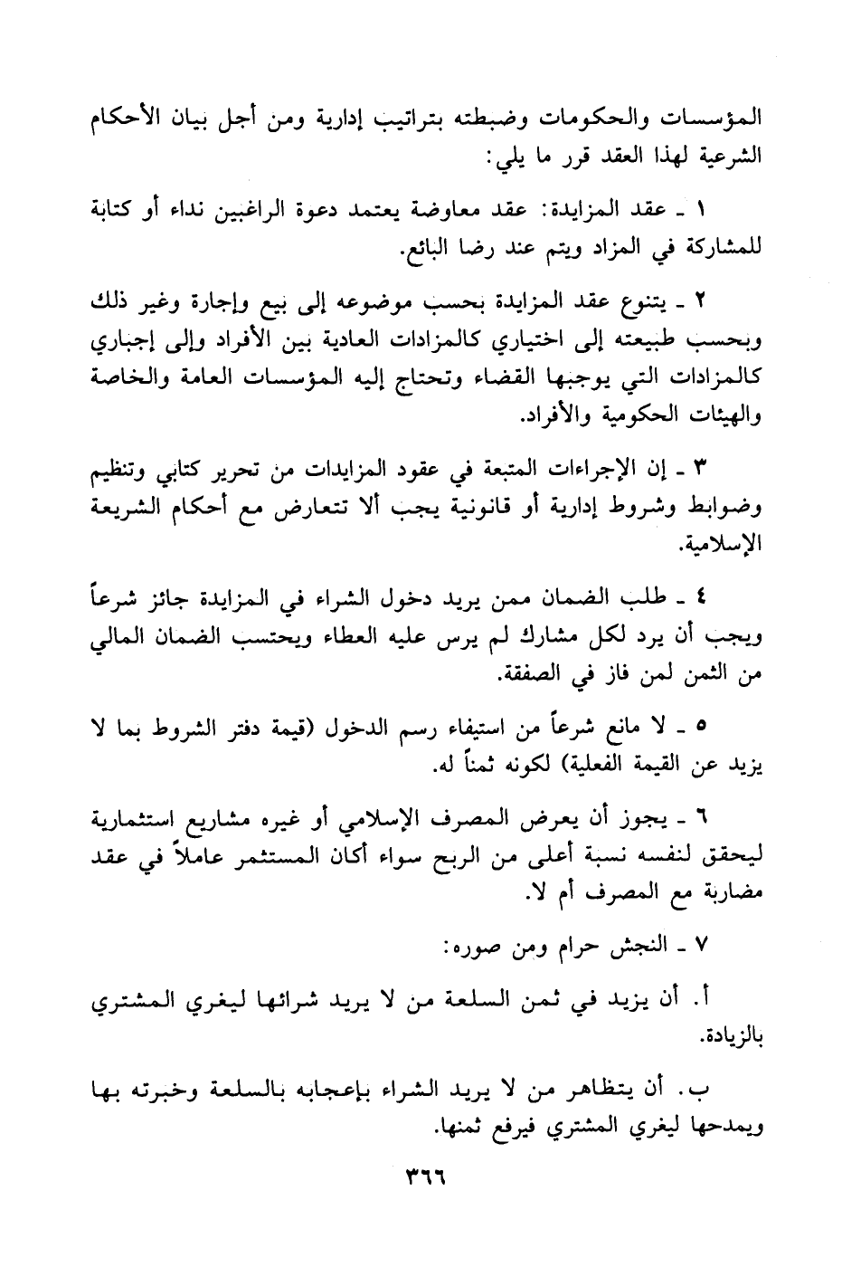 3. إن الإجراءات المتبعة في عقود المزايدات من تحرير كتابي وتنظيم وضوابط وشروط إدارية أو قانونية يجب ألا تتعارض مع أحكام الشريعة الإسلامية.