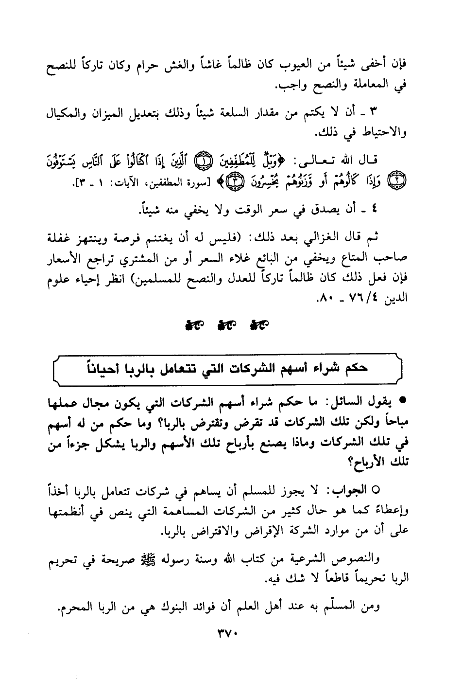 قال الله تعالى: (وَيْلٌ لِلْمُطَفِّفِينَ الَّذِينَ إِذَا اكْتَالُوا عَلَى النَّاسِ يَسْتَوْفُونَ وَإِذَا كَالُوهُمْ أَوْ وَزَنُوهُمْ يُخْسِرُونَ) سورة المطففين الآيات 1 - 3.