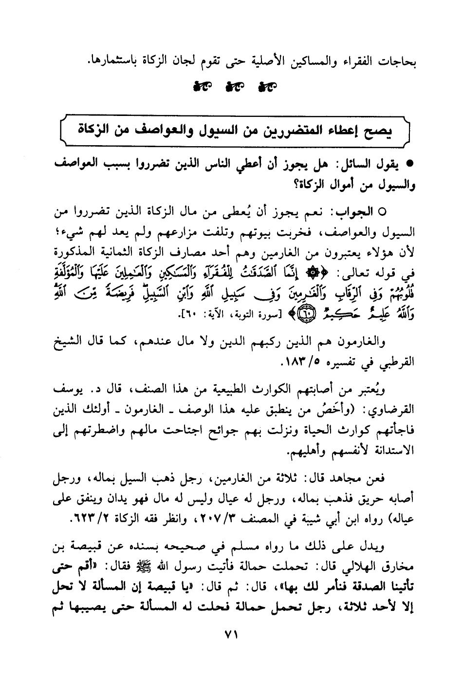 بحاجات الفقراء والمساكين الأصلية حتى تقوم لجان الزكاة باستثمارها.