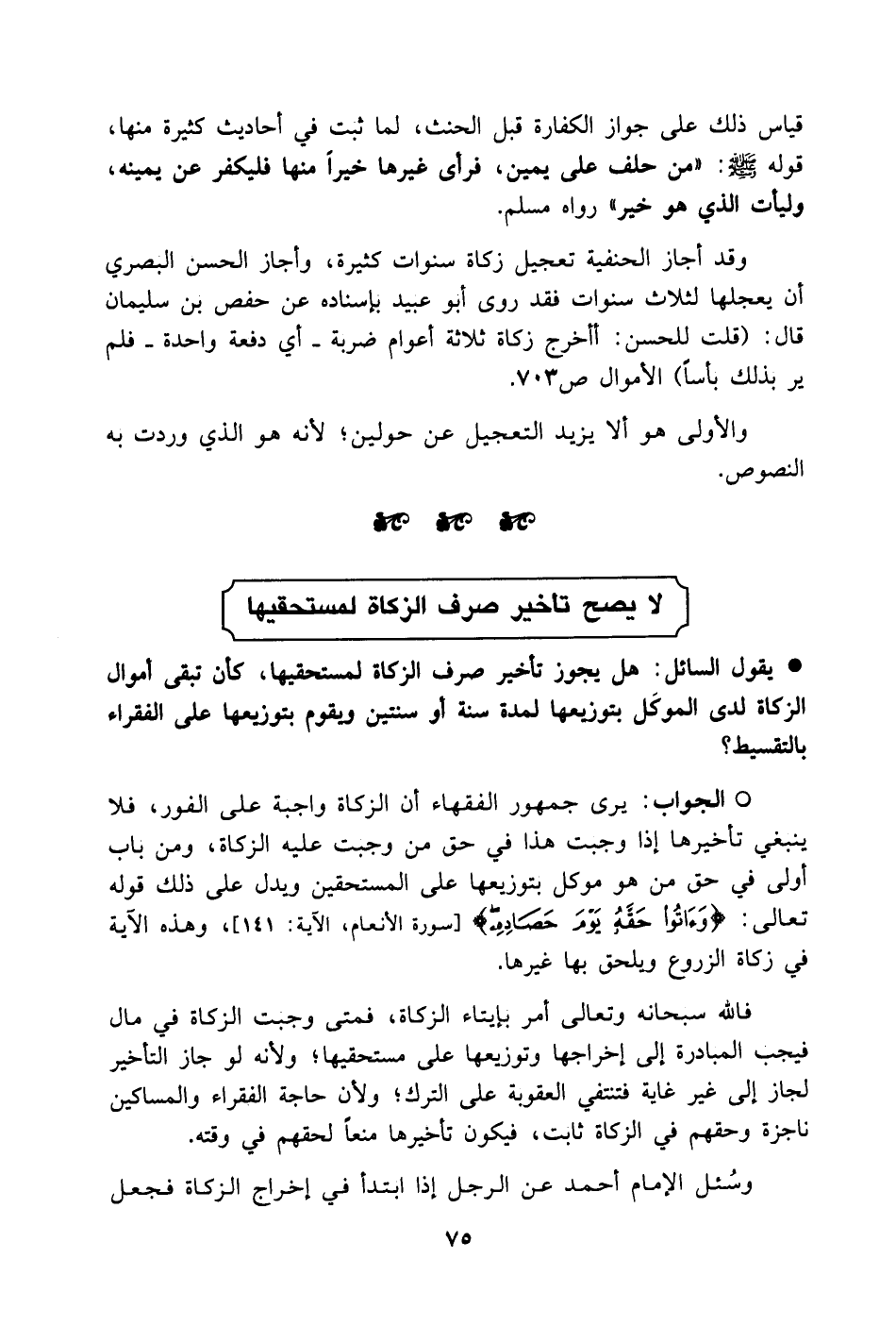 لا يصح تأخير صرف الزكاة لمستحقيها