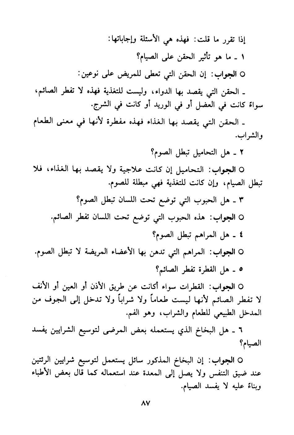إذا تقرر ما قلت: فهذه هي الأسئلة وإجاباتها: