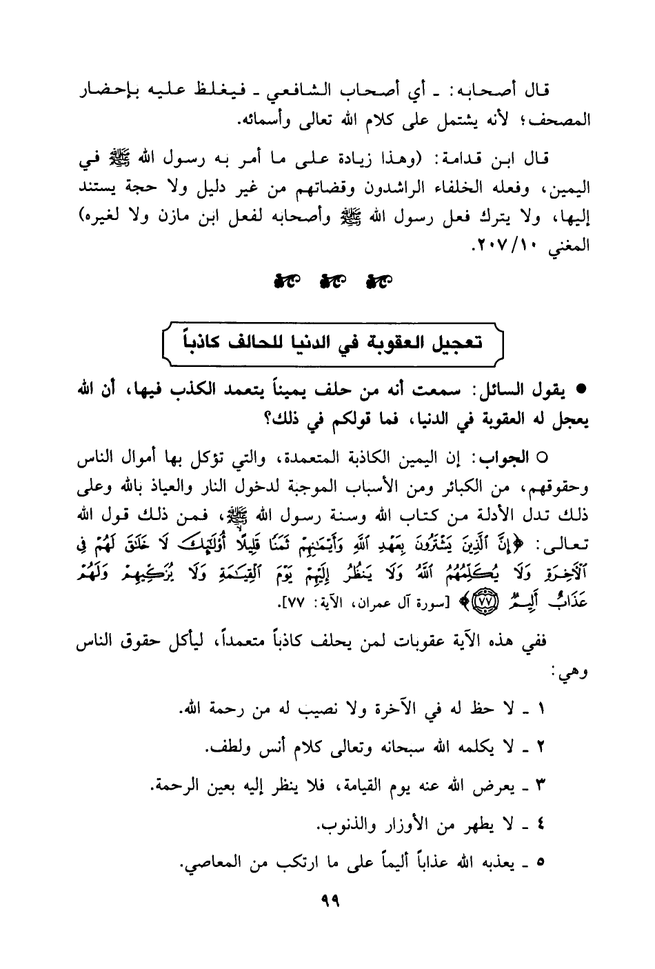 تعجيل العقوبة في الدنيا للحالف كاذباً