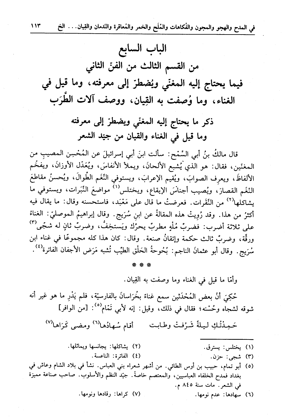 الباب السابع حاجات المغني ووصف القيان والآلات